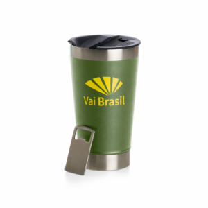 Versátil e exclusivo, com abridor embutido na tampa. Um presente criativo que valoriza sua marca.